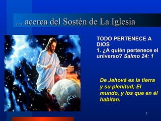 El documento presenta las enseñanzas bíblicas sobre el diezmo. Explica que todo pertenece a Dios, incluyendo la tierra, el oro y la plata. Debemos dar gracias a Dios por nuestros bienes y darle la décima parte de todo lo que recibimos, para sustentar la predicación del evangelio. Dios promete derramar abundantes bendiciones sobre aquellos que dan con alegría.