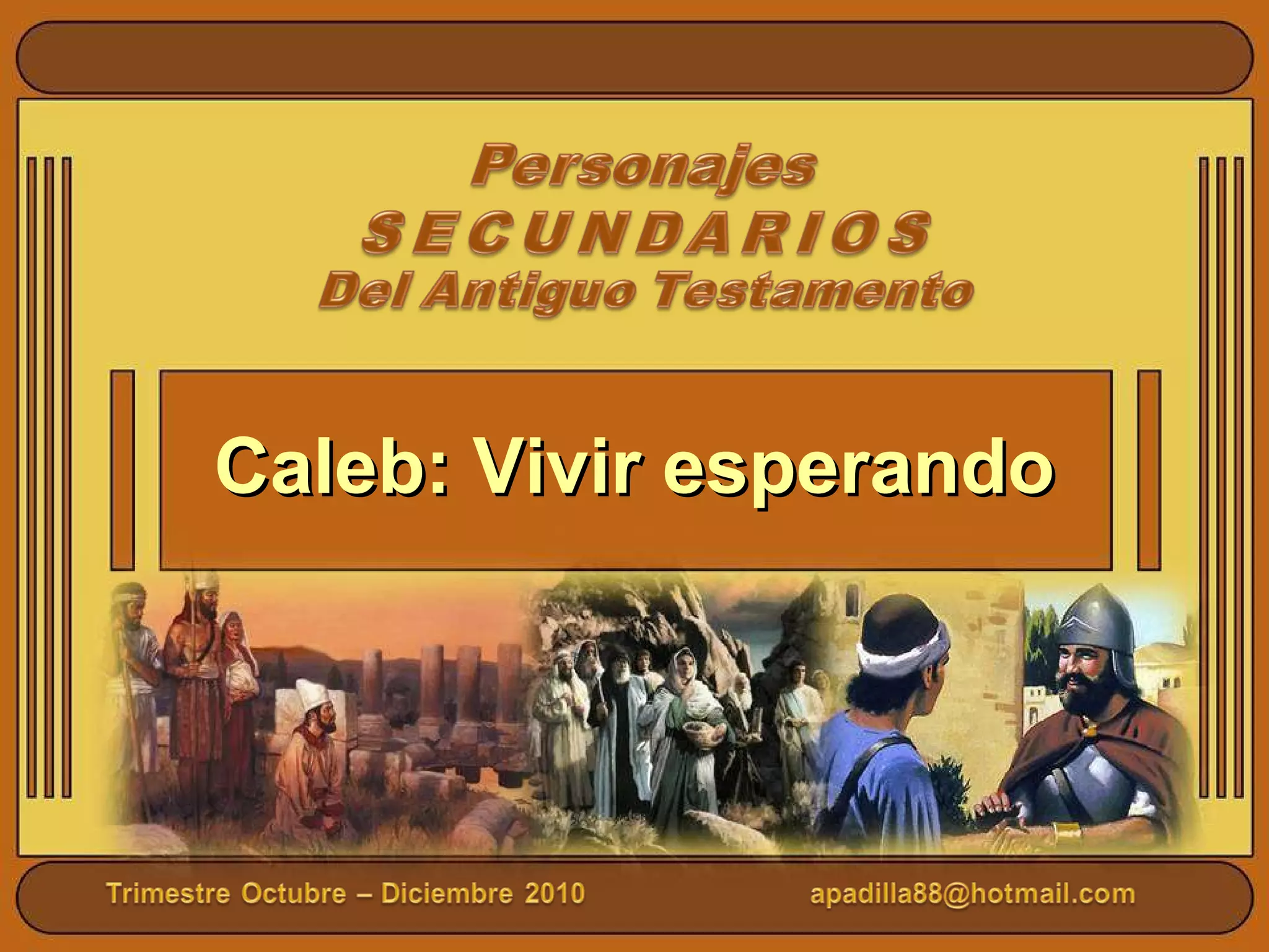 El documento resume la vida de Caleb como un líder que vivió con firmeza y fe en Dios a pesar de las dificultades. Caleb animó al pueblo a confiar en que Dios les daría la victoria sobre sus enemigos, a diferencia de los diez espías sin fe. A lo largo de su vida, Caleb continuó viviendo con fe en Dios, compartiendo generosamente las bendiciones que Dios le dio y motivando a los jóvenes a seguir el liderazgo de Dios.