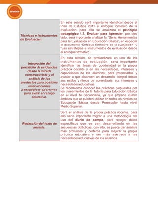 Este documento presenta las temáticas que se abordarán en un curso sobre la evaluación del desempeño docente según el Instituto Nacional para la Evaluación de la Educación. El curso cubrirá el contexto y diseño del perfil grupal de estudiantes, la planificación e integración del plan de trabajo, diseño de instrumentos de evaluación, uso del portafolio de evidencias, y redacción del análisis. Cada sesión proporcionará insumos sobre los temas como estilos de aprendizaje, materiales didácticos, y