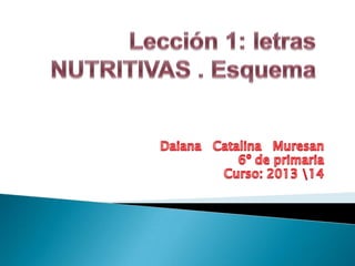 El documento habla brevemente sobre diferentes aspectos de la lectura y la escritura como letras nutritivas, comprensión, expresión escrita y oral, juegos de lenguaje, vocabulario, ortografía y gramática.