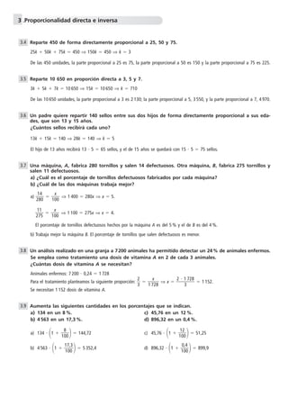 Este documento presenta varios ejercicios relacionados con la proporcionalidad directa e inversa. Incluye ejemplos de cálculos para determinar valores dados proporciones directas o inversas, así como repartos de cantidades según estas proporciones. También contiene algunos problemas adicionales sobre porcentajes y variación de precios.