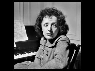 Edith Piaf tuvo una vida difícil marcada por el abandono y la pobreza. Se convirtió en una famosa cantante francesa, pero su adicción a las drogas y el alcohol deterioraron su salud. A los 46 años, se enamoró de Théo Sarapo, un hombre 20 años menor, con quien se casó y vivió feliz durante un año antes de morir debido a una cirrosis. Théo pagó todas las deudas de Piaf y luego se suicidó para estar con ella de nuevo, demostrando su gran amor.