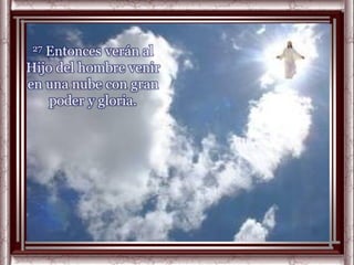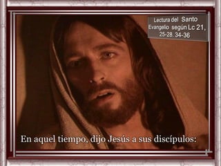 Jesús anuncia signos en el sol, la luna y las estrellas que precederán la venida del Hijo del Hombre. Los discípulos deben estar atentos y orar continuamente para estar preparados. La lectura invita a los creyentes a levantar la cabeza ante las dificultades y liberarse de ataduras para dar prioridad a lo que dice el Señor.