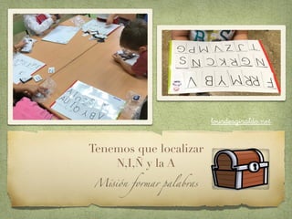 Este documento describe un proyecto para niños de 4 años donde deben formar la palabra "NIÑA" usando letras individuales. El objetivo es localizar las letras N, I, Ñ y A para completar la misión de formar palabras. Al final, lograron formar correctamente la palabra "NIÑA".