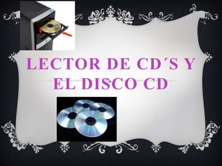 El documento describe las partes y el funcionamiento de un lector de CD. Explica que un lector de CD utiliza un láser para leer la información almacenada en un disco compacto (CD) mediante ranuras microscópicas. Describe las partes internas como el cabezal láser, riel y motor, y las partes externas como la charola, indicador y conectores. Explica que el lector abre la charola, acopla el disco para que gire, y envía los datos leídos por el láser a la computadora para que el usuario pued