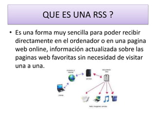 RSS es una forma sencilla de recibir información actualizada de páginas web favoritas sin visitarlas individualmente. Funciona permitiendo que lectores RSS accedan periódicamente a páginas suscritas y traigan actualizaciones al ordenador o a lectores online, brindando una herramienta útil para mantenerse informado y ahorrar tiempo en la lectura.