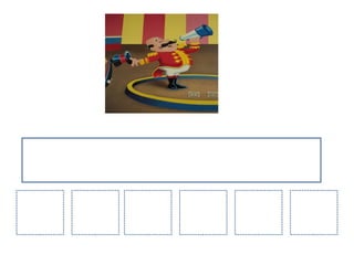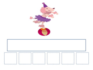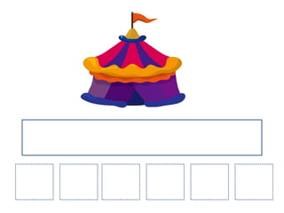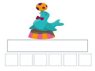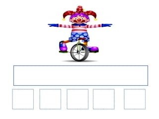 El documento describe varios animales y artistas del circo, sus acciones y características físicas, incluyendo que el payaso monta en bici, el elefante juega a la pelota, la equilibrista camina por la cuerda y el perro camina sobre una pelota. También menciona que el payaso tiene la nariz roja, la foca es azul, las palomitas son saladas y el domador tiene un sombrero rojo.
