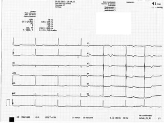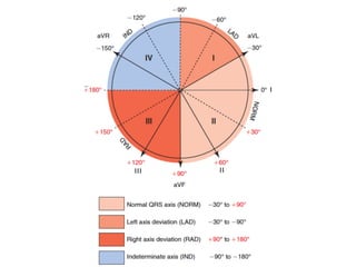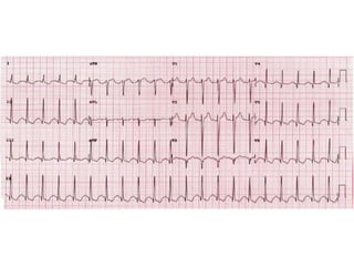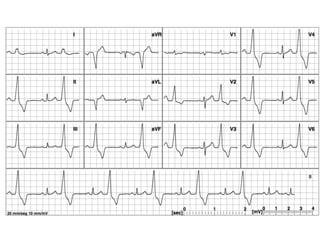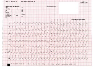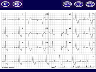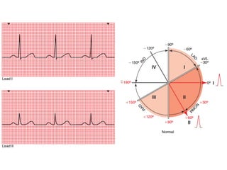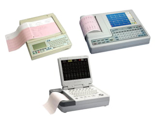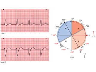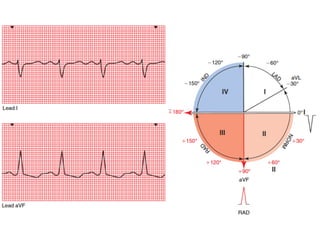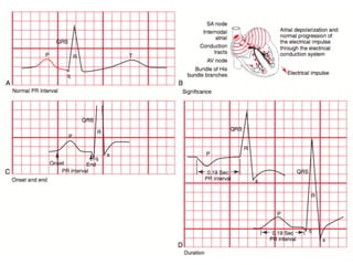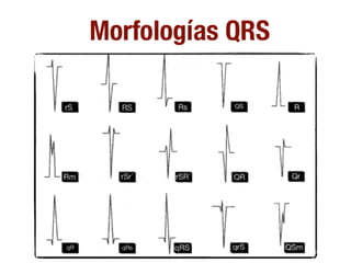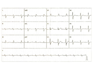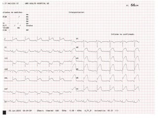 El documento resume los conceptos básicos de la lectura de un electrocardiograma (ECG). Explica las ondas, intervalos y segmentos que componen un ECG normal, incluyendo la activación atrial, la conducción AV, la activación ventricular y la repolarización. También describe cómo interpretar ritmos cardiacos, medir frecuencias y calcular ejes eléctricos. El autor provee instrucciones para identificar alteraciones comunes como bloqueos, arritmias y cambios en los intervalos.