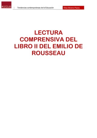 Este documento resume el segundo libro del Emilio de Rousseau. Rousseau sostiene que la primera infancia abarca de los 2 a los 12 años, cuando los niños deben aprender de forma autónoma a través de la experimentación. Propone una "educación negativa" que proteja a los niños de vicios y una "educación de los sentidos" para que aprendan a través de la experiencia.