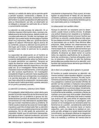 Este documento describe los conceptos fundamentales de la observación científica, los hechos y las teorías como factores clave de la investigación. Explica que la observación desempeña un papel importante en la investigación y que involucra la atención, sensación, percepción y reflexión. También describe los procesos de inducción y abstracción que permiten ir de lo particular a lo general. El documento concluye que la observación científica requiere sentido crítico para evitar sesgos y debe progresar de fenómenos simples a más comple