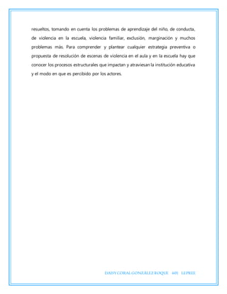 Este documento discute los desafíos que enfrentan los estudiantes de magisterio durante sus prácticas de enseñanza, incluyendo sentimientos de miedo y dudas sobre su vocación. Examina cómo los estudiantes se apropian de la cultura escolar a través de experiencias contradictorias y respuestas diferenciadas a las normas y valores de la escuela. También explora las condiciones e interacciones que influyen en este proceso de formación docente y cómo los estudiantes buscan alternativas a la mera reproducción de la instit