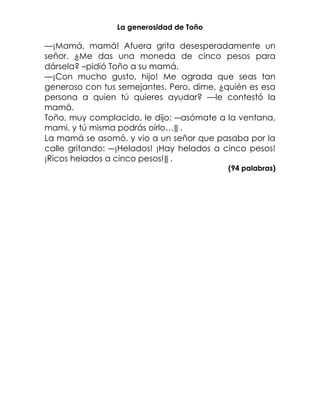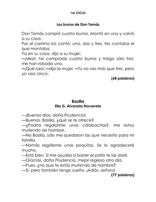 Don Tomás compró cuatro burros pero al contarlos en su casa sólo encontró tres, creyendo que le habían robado uno, mientras que su esposa contó cinco burros. Basilia le pidió unas calabazas a doña Prudencia a cambio de ayudarla a barrer pero prefirió irse porque también tenía sueño. Toño le pidió una moneda a su mamá para dársela a un señor que pasaba gritando que vendía helados.