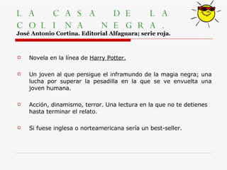 El documento recomienda 4 lecturas para el verano: La casa de la colina negra, una novela en la línea de Harry Potter sobre magia negra; Huída al sur, una novela policíaca con intriga que entrecruza 3 historias; Las mil y una noches, una adaptación de cuentos populares como Aladino; y Drácula, una novela de terror fascinante y bien escrita a través de cartas y diarios.