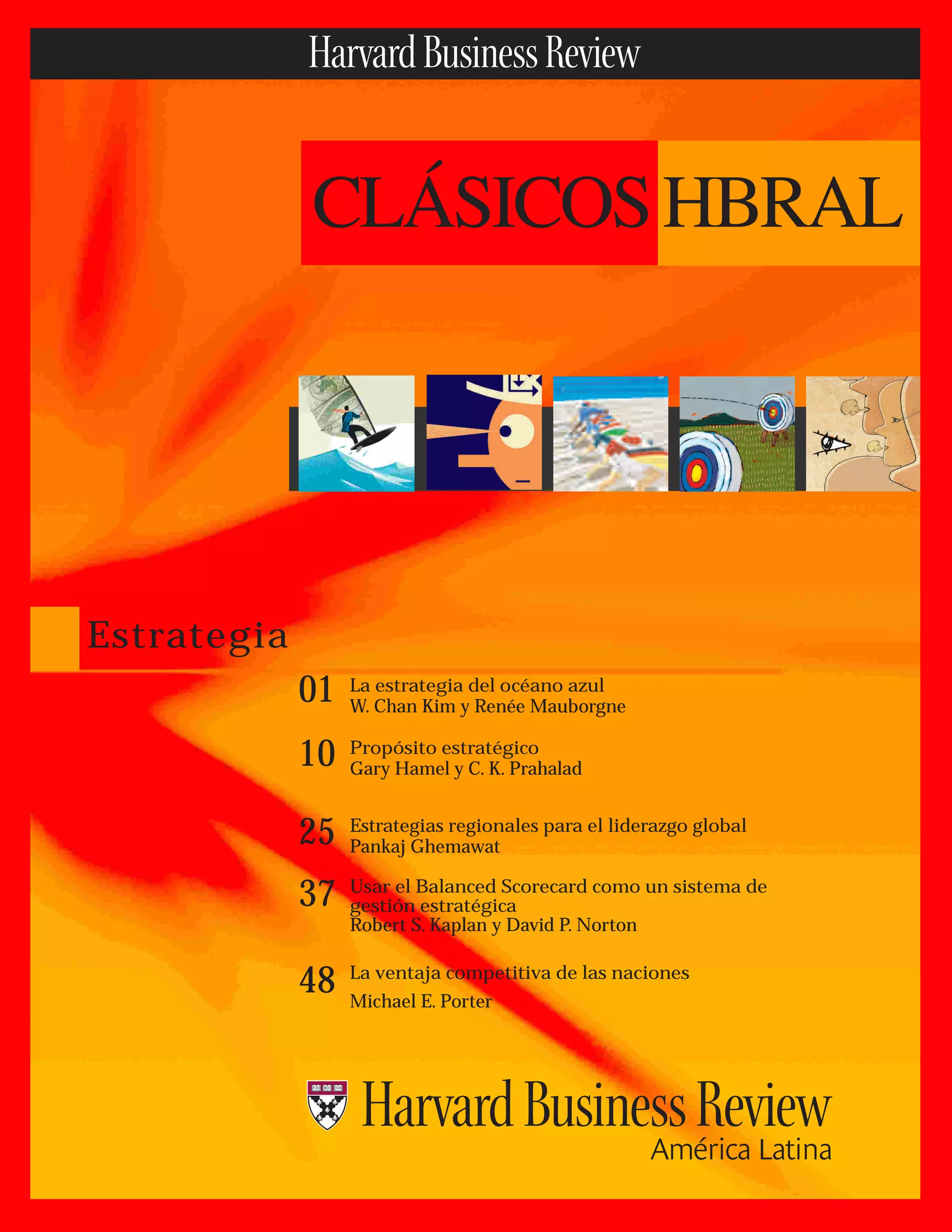 Este documento presenta una lista de libros y autores sobre estrategia empresarial. Incluye títulos como "La estrategia del océano azul" de W. Chan Kim y Renée Mauborgne, "Propósito estratégico" de Gary Hamel y C. K. Prahalad, y "La ventaja competitiva de las naciones" de Michael E. Porter, entre otros. Además, proporciona una breve descripción del libro "La estrategia del océano azul" y su enfoque sobre la creación de nuevos mercados no disputados