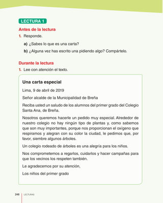 Los niños del primer grado escriben una carta al alcalde pidiéndole que plante árboles alrededor de su colegio porque no hay ninguno y los árboles son importantes. Se comprometen a cuidar los árboles. La carta tiene un tono de preocupación por el medio ambiente y su comunidad.