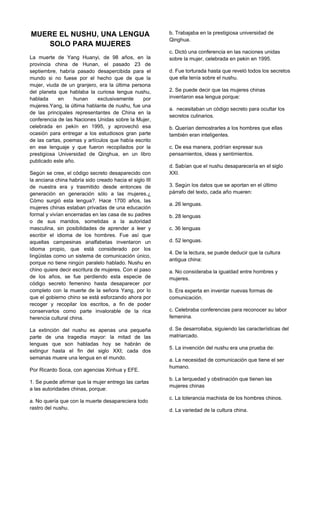 3. Con la muerte de Yang, el nushu se extinguió. La desaparición de lenguas es un problema grave, muriendo una cada dos semanas.