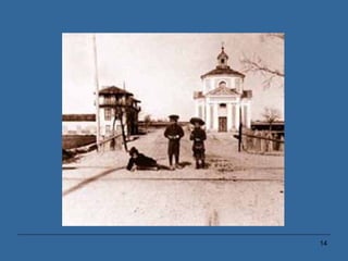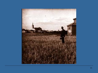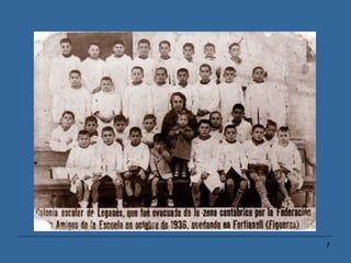 Este documento presenta varias fotografías históricas de la Plaza de España en Leganés, España. Las imágenes muestran la plaza en 1904, durante la guerra y en otros momentos del pasado. El documento también incluye enlaces a sitios web con más información sobre la historia de Leganés.