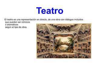 El documento habla sobre la historia del teatro en España durante los siglos XVI y XVII. Resume que Lope de Vega revolucionó el teatro español al crear la comedia nacional, rompiendo con las tres unidades clásicas y usando temas y personajes de la vida real. También destaca a otros dramaturgos de la época como Tirso de Molina y Calderón de la Barca. Finalmente, menciona a William Shakespeare y Molière como los dramaturgos más importantes de la época en Inglaterra y Francia respectivamente.