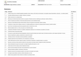 Este documento presenta una lista de códigos y estándares de evaluación para la asignatura de Lengua Castellana y Literatura para 3o curso de Educación Primaria. Los estándares cubren diferentes áreas como la expresión y comprensión oral y escrita, el uso de diccionarios, la reproducción y transformación de textos, la comprensión lectora, la escritura creativa y el uso de tecnología. El documento proporciona valores máximos para la evaluación de cada estándar.