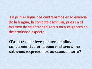 Este documento resume las reglas básicas de acentuación del castellano, dividiéndolas en palabras agudas, llanas, esdrújulas y sobresdrújulas. Explica que las palabras agudas y esdrújulas siempre llevan tilde, mientras que las llanas solo llevan tilde si terminan en consonante que no sea n ni s. También cubre las reglas para diptongos y hiatos. Concluye diciendo que a pesar de estas reglas generales, el castellano tiene muchas excepciones que