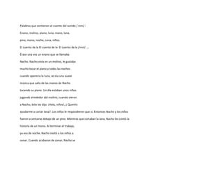 El documento presenta el plan de trabajo para una lección sobre el fonema /n/ dirigida a estudiantes de segundo y quinto año de educación básica. La lección abordará conceptos como sujeto tácito vs sujeto explícito a través de actividades como identificar palabras que contengan el fonema /n/, formar oraciones, y responder preguntas. El plan incluye los objetivos, temas, distribución de tareas y formas de evaluar el aprendizaje de los estudiantes.