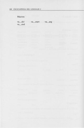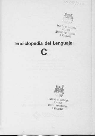 Este documento presenta un resumen de tres capítulos de la Enciclopedia del Lenguaje C. Introduce los conceptos básicos del lenguaje C como su historia, elementos sintácticos, tipos de datos, variables, funciones, entrada y salida de datos, y sentencias de control. Explica cómo escribir, compilar y depurar programas simples en C.