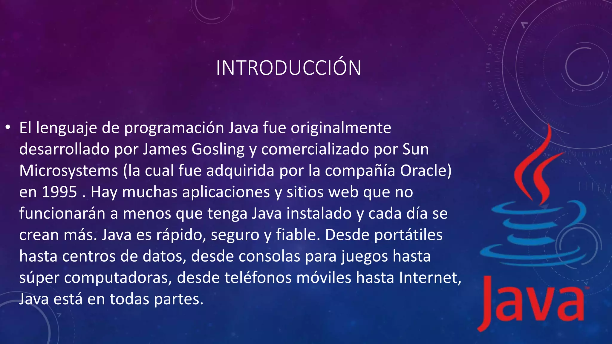 El documento presenta un análisis del lenguaje de programación Java, su historia, características fundamentales y su enfoque en la programación orientada a objetos. Destaca su naturaleza multiplataforma, segura y la importancia de la herencia en la reutilización de código. Finalmente, menciona la necesidad del Java Development Kit (JDK) para su desarrollo.