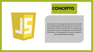 Javascript es un lenguaje de programación que se ejecuta en el navegador del usuario para hacer que las páginas web sean más interactivas y dinámicas. Fue creado en los años 90 por Brendan Eich para Netscape Navigator y luego estandarizado como ECMAScript. Javascript permite ejecutar código en respuesta a eventos del usuario sin tener que recargar la página.