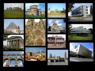 El documento describe la evolución del lenguaje arquitectónico a través de la historia, desde la prehistoria hasta la posmodernidad. Se destacan diferentes estilos como el románico, gótico y renacentista, y cómo surgieron nuevos lenguajes con la revolución industrial y los movimientos modernos. También se mencionan varios arquitectos influyentes.