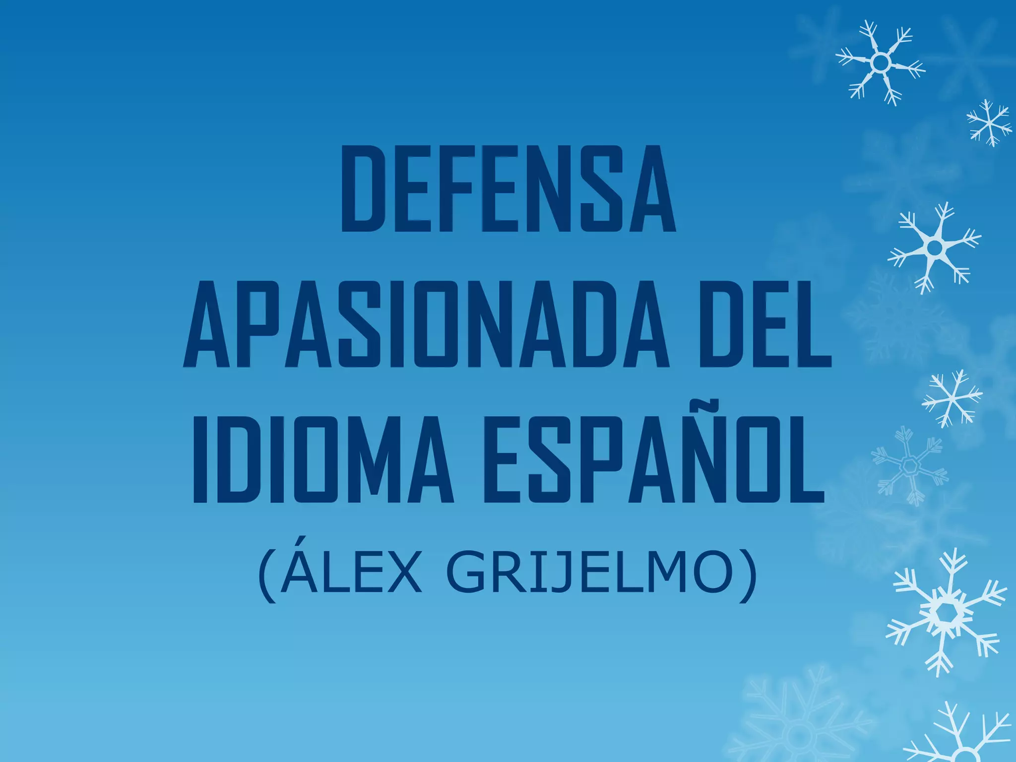El documento defiende apasionadamente el idioma español y discute varios temas relacionados con su evolución y preservación. Argumenta que el idioma ha evolucionado de manera natural a través de acuerdos compartidos por los hablantes y no por cambios impuestos. También advierte sobre las amenazas que plantea la influencia excesiva del inglés y la falta de enseñanza correcta de la gramática.
