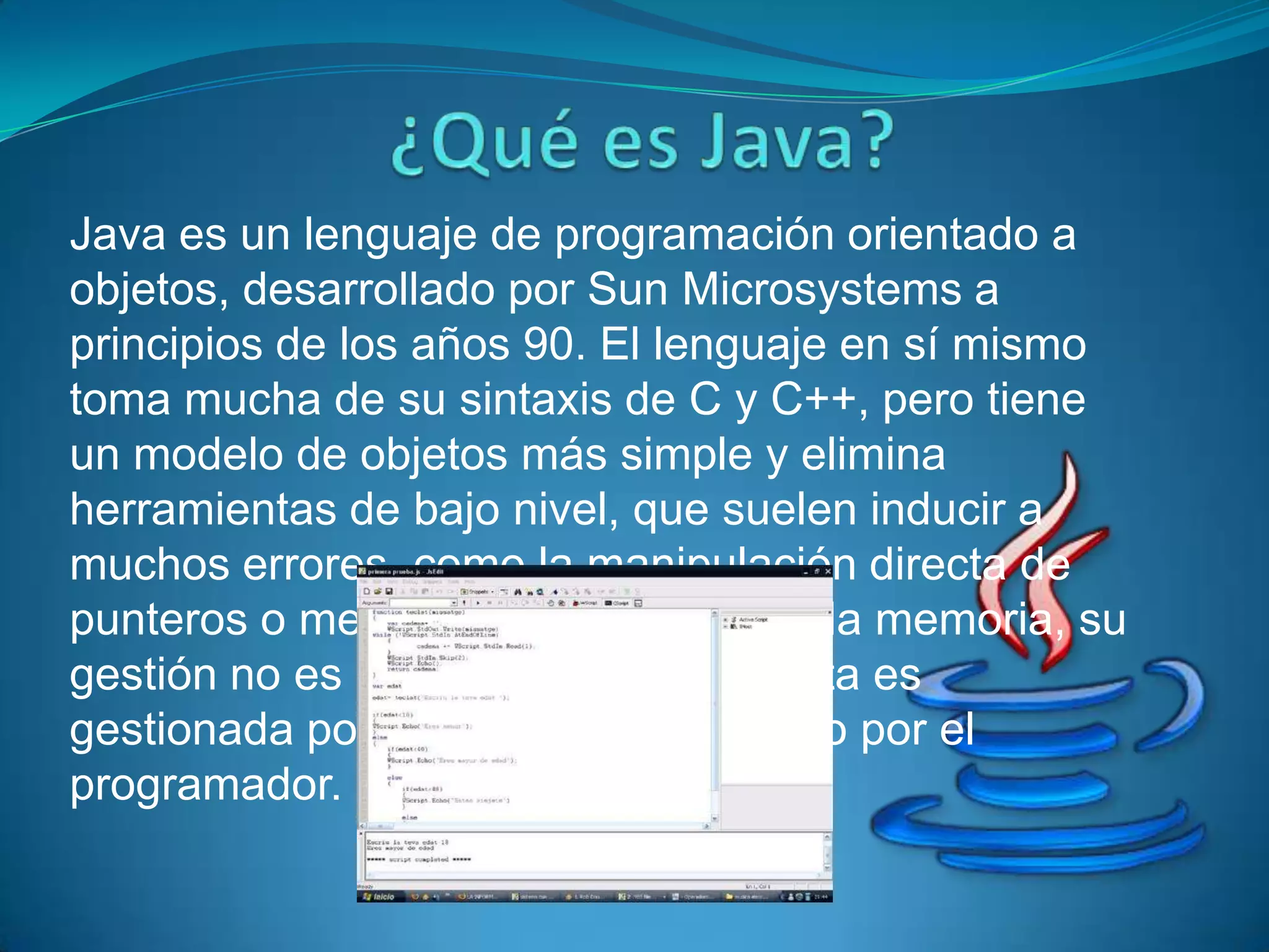 Este documento describe el lenguaje de programación Java. Java es un lenguaje orientado a objetos desarrollado por Sun Microsystems en los años 90 que toma su sintaxis de C y C++ pero tiene un modelo de objetos más simple y elimina herramientas de bajo nivel como punteros. Las aplicaciones Java se compilan normalmente a bytecode que es interpretado o compilado a código nativo para su ejecución.