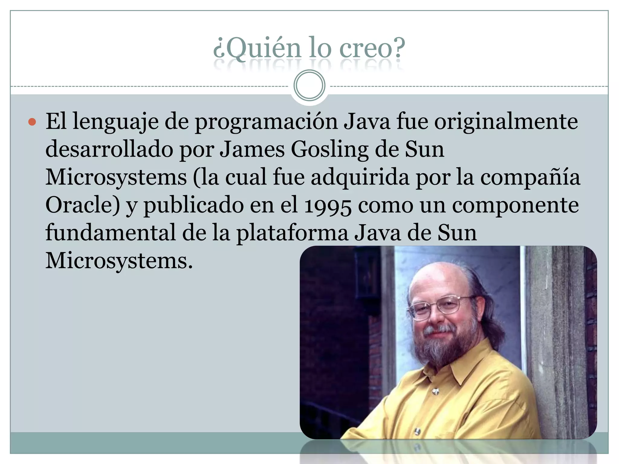 El lenguaje de programación Java fue creado originalmente por James Gosling en Sun Microsystems en 1991 y lanzado públicamente en 1995. Fue desarrollado originalmente como una herramienta de programación para un proyecto de set-top-box y tiene la importancia de permitir que las aplicaciones se ejecuten en diferentes arquitecturas e interactúen sin importar la plataforma subyacente. Java es ampliamente utilizado en dispositivos móviles, navegadores web, sistemas de servidores y aplicaciones de escritorio.