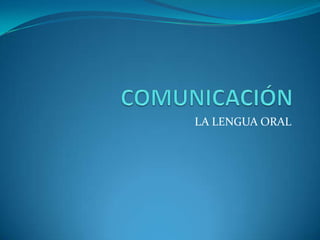 Este documento describe los elementos básicos de la comunicación oral y escrita. Explica que la comunicación implica un emisor, receptor, código, mensaje y canal. Luego detalla características del lenguaje humano como la doble articulación y la creatividad. Finalmente discute la diferencia entre lenguaje, lengua y habla.