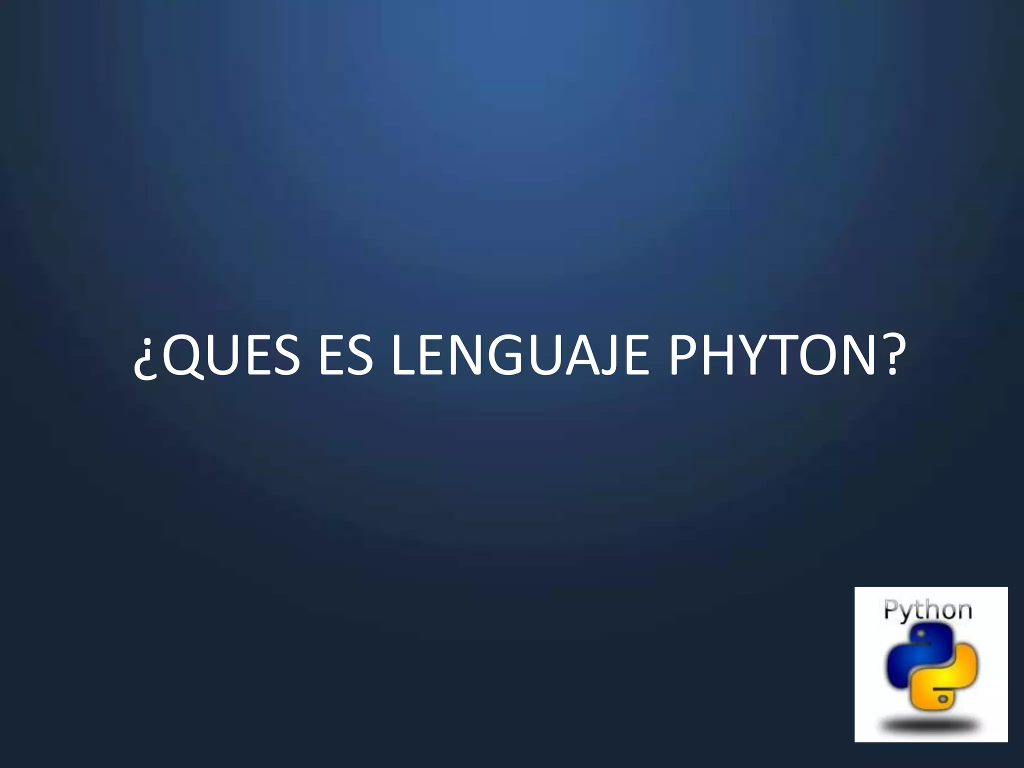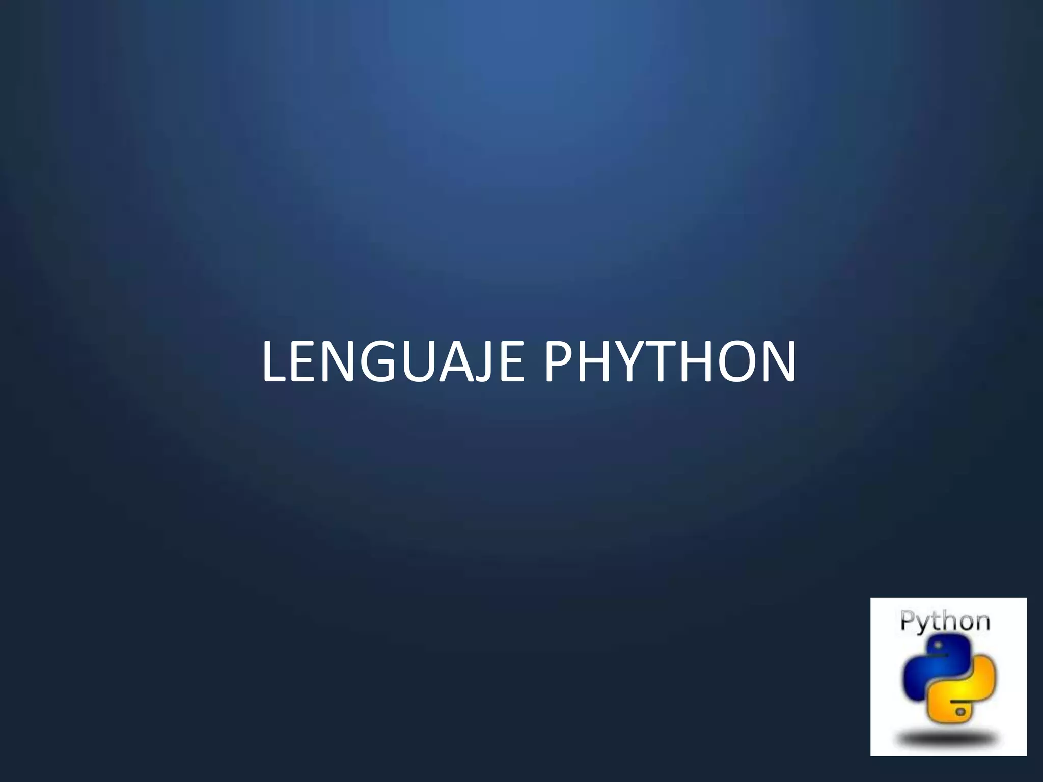 Python es un lenguaje de programación multiparadigma creado a finales de los 80. Es de tipado dinámico, interpretado y multiplataforma, con énfasis en la legibilidad del código. Soporta programación orientada a objetos, imperativa y funcional. Cuenta con una biblioteca estándar amplia y módulos que extienden sus capacidades. El intérprete interactivo permite probar fragmentos de código.