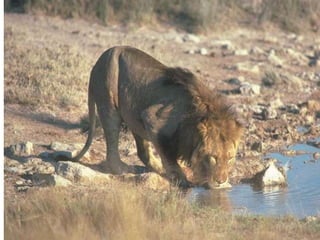 El león habita en gran parte de África y Asia, excepto en selvas tropicales y desiertos. Puede reproducirse todo el año, generalmente cada dos años, con camadas de 1 a 6 cachorros. Se alimenta principalmente de grandes mamíferos como cebras y búfalos, cazando principalmente de noche usando la vista y el oído, logrando éxito en 1 de cada 4 intentos.