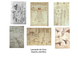 El documento resume las principales características de varias obras maestras de Leonardo da Vinci, incluyendo La Gioconda, La Virgen de las Rocas y La Última Cena. Destaca el uso pionero del sfumato para suavizar los contornos, estudios anatómicos y detalles naturalistas, composiciones geométricas muy equilibradas, y paisajes de fondo neblinosos que crean profundidad a través de la perspectiva aérea.