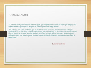 Leonardo da Vinci era un artista del Renacimiento italiano conocido por su habilidad en varias disciplinas como la pintura, la escultura, la arquitectura y la ciencia. Se formó en Florencia y trabajó para varios mecenas, destacando sus obras maestras como La Gioconda y La última cena. Da Vinci hizo importantes contribuciones científicas a través de sus escritos y dibujos sobre anatomía, ingeniería y otras áreas.