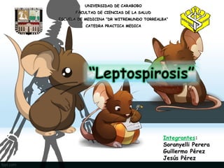 La leptospirosis es una enfermedad bacteriana que afecta a humanos y animales. Se transmite principalmente a través del contacto con la orina de animales infectados como ratas y ratones. Los síntomas incluyen fiebre, dolor de cabeza y muscular, e irritación conjuntival. El tratamiento incluye antibióticos como ampicilina, azitromicina y ceftriaxona. La prevención implica vacunar mascotas y ganado, evitar aguas estancadas y mantener los patios libres de basura para reducir la