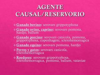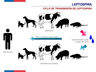 Este documento presenta el caso clínico de un hombre de 28 años que trabaja en el mantenimiento de canales de riego y que ingresó al hospital con síntomas de leptospirosis, incluyendo ictericia, fiebre y dolor muscular. Los exámenes revelaron elevación de las enzimas hepáticas y presencia de leptospira en la orina. Fue tratado con penicilina y mejoró, aunque presentó episodios de bradicardia que también se resolvieron.