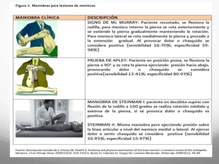 Las lesiones meniscales, que incluyen desgarros y rupturas, son comunes en la población joven y los deportistas, siendo el tratamiento quirúrgico el más frecuente, con cerca de 1.5 millones de artroscopias realizadas anualmente en EE. UU. Los meniscos, fibrocartílagos en la rodilla, cumplen funciones clave como estabilización y absorción de cargas. El enfoque en el tratamiento varía entre conservador y quirúrgico dependiendo de la gravedad y características de la lesión.