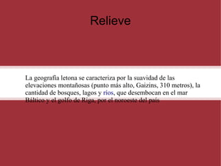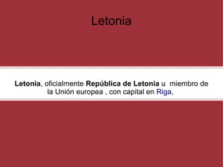 Letonia es una república miembro de la Unión Europea con capital en Riga. El país tiene un clima frío y húmedo, con veranos cortos y lluviosos e inviernos con temperaturas bajo cero. La economía se basa principalmente en la agricultura, la industria textil y siderometalúrgica, y el turismo está creciendo gracias al patrimonio histórico del país. La moneda es el euro.