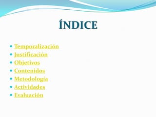 Este documento presenta una unidad didáctica de dos semanas sobre profesiones para estudiantes de primer grado. La unidad tiene como objetivo fomentar el respeto por diferentes trabajos y valorar el esfuerzo. Los contenidos incluyen roles laborales, herramientas de trabajo, imitaciones de profesiones y canciones sobre el tema. Las actividades propuestas son prácticas como usar flashcards, cantar canciones, hacer teatro y completar fichas. La evaluación medirá la motivación, el esfuerzo y el interés de los estudiant