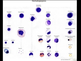 El documento describe diferentes tipos de leucemia. Define las leucemias como una proliferación anormal de células hematopoyéticas. Clasifica las leucemias en agudas o crónicas dependiendo de si involucran células inmaduras o maduras. Describe las características clínicas, causas y tratamientos generales de las leucemias agudas y crónicas más comunes como la leucemia mieloide aguda, la leucemia linfoblástica aguda, la leucemia mieloide crónica y la