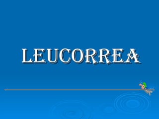 El documento resume las funciones de la vagina y la leucorrea. Explica que la vagina es el conducto del útero, el órgano del coito y del parto. Describe la flora vaginal normal y los posibles agentes infecciosos que causan leucorrea. Explica los síntomas, diagnóstico y tratamiento de diferentes tipos de leucorrea en mujeres de diferentes edades, incluyendo factores de riesgo y medicamentos utilizados.