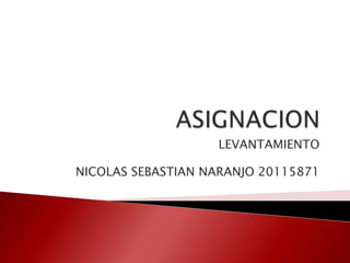 El documento describe un levantamiento topográfico de un parqueo. Se midieron las dimensiones reales del parqueo y se analizó la relación matemática entre las medidas reales y su representación en un plano, con el objetivo de comprender el concepto de escala y cómo funciona.