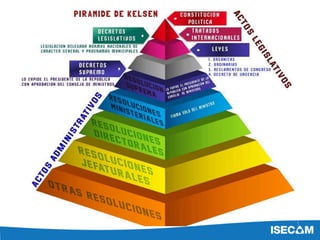 El documento habla sobre la normativa nacional en materia de seguridad y salud en el trabajo en el Perú. Explica las principales disposiciones de la Ley 29783 sobre seguridad y salud en el trabajo y su reglamento, incluyendo la constitución de comités paritarios de seguridad y salud en el trabajo y la elección de supervisores en empresas con menos de 20 trabajadores. También menciona algunas de las obligaciones del empleador en relación a la seguridad y salud ocupacional.