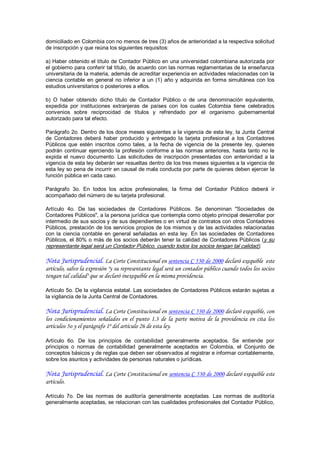 Este documento es una ley colombiana de 1990 que regula la profesión de contador público. Establece que un contador público es una persona facultada para dar fe pública sobre asuntos contables y dictaminar estados financieros. Define las actividades relacionadas con la contabilidad que pueden realizar los contadores. También establece los requisitos para la inscripción de los contadores, y regula aspectos como las sociedades de contadores y los principios y normas de contabilidad y auditoría que deben seguir.