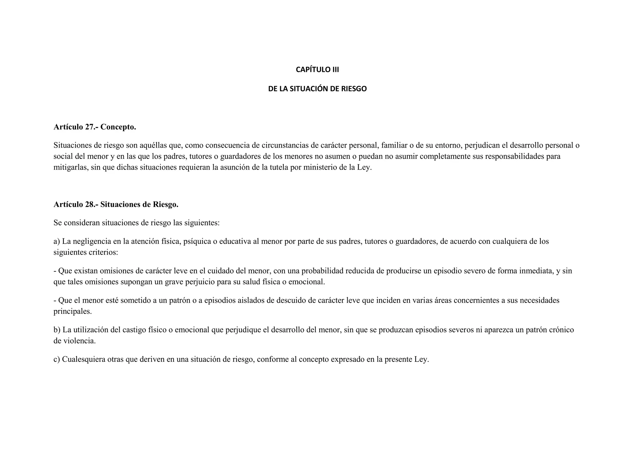 Este documento describe las situaciones de riesgo y desamparo de menores. Define situación de riesgo como aquellas en las que los padres no pueden asumir completamente sus responsabilidades para mitigar circunstancias personales o familiares que perjudican el desarrollo del menor. Situación de desamparo se refiere a cuando un menor está privado de asistencia debido al incumplimiento de deberes de protección. El documento establece medidas de apoyo a la familia para situaciones de riesgo y un procedimiento para declarar situaciones