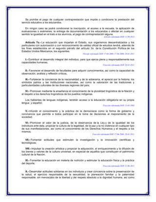 Este documento presenta el Capítulo I de la Ley General de Educación de México. Establece que la educación es un derecho de todos los mexicanos y que el Estado está obligado a proveer educación gratuita y de calidad en niveles preescolar, primaria, secundaria y medio superior. También define los objetivos y principios de la educación mexicana, como fomentar el desarrollo integral de los estudiantes, la democracia, la cultura y el respeto a la diversidad, entre otros. Finalmente, describe las instituciones que