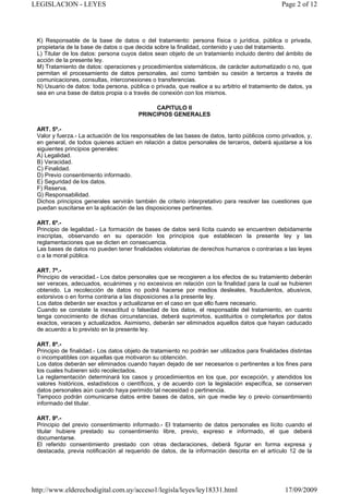 Este documento presenta la Ley 18.331 de Uruguay sobre el derecho a la protección de datos personales. Declara que el derecho a la protección de datos personales es inherente a las personas y establece principios como la legalidad, veracidad, finalidad, consentimiento informado, seguridad de datos y reserva para regular el tratamiento de datos personales. Define términos clave como base de datos, dato personal, comunicación de datos, responsable del tratamiento y establece disposiciones generales sobre el ámbito de aplicación de la ley.